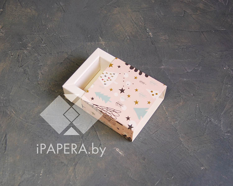 Коробка-пенал «Ёлки» 5*5*3 см с фальшбортом (белое дно)