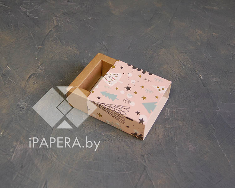 Коробка-пенал «Ёлки» 5*5*3 см с фальшбортом (крафт дно)