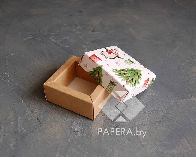 Коробка «Пингвины» 5*5*3 см с фальшбортом (крафт дно)