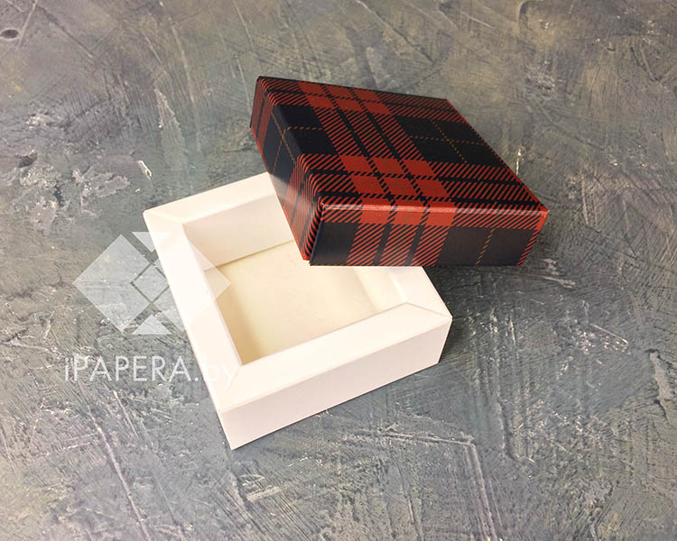 Коробка «Шотландка» 5*5*3 см с фальшбортом (белое дно)
