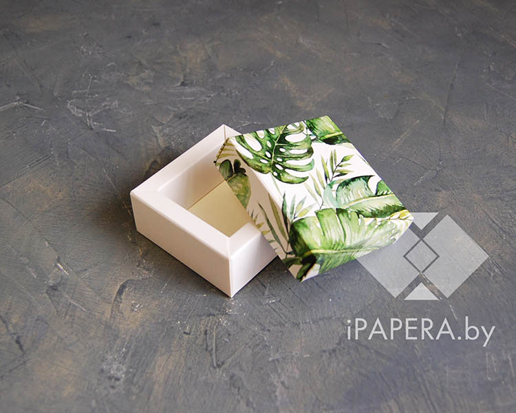 Коробка «Тропики» 5*5*3 см с фальшбортом (белое дно)