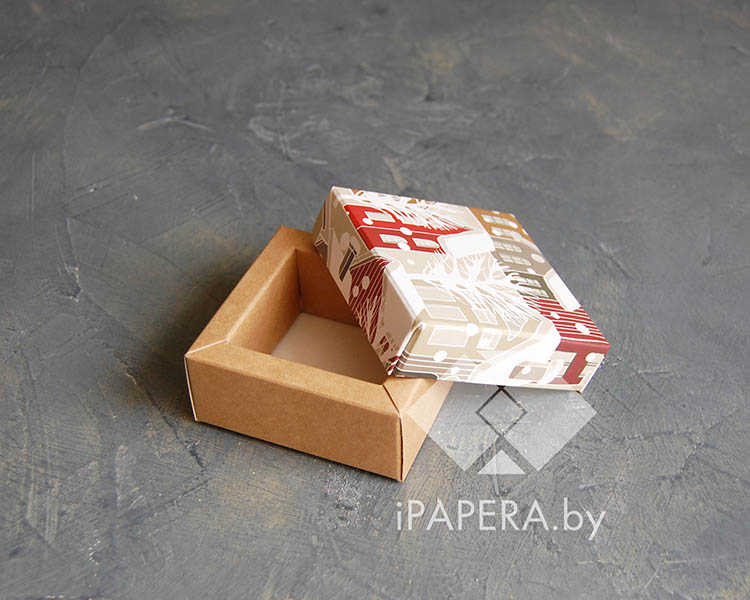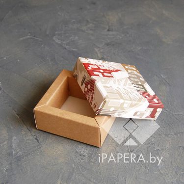 Коробка «Зимний город» 5*5*3 см с фальшбортом (крафт дно)