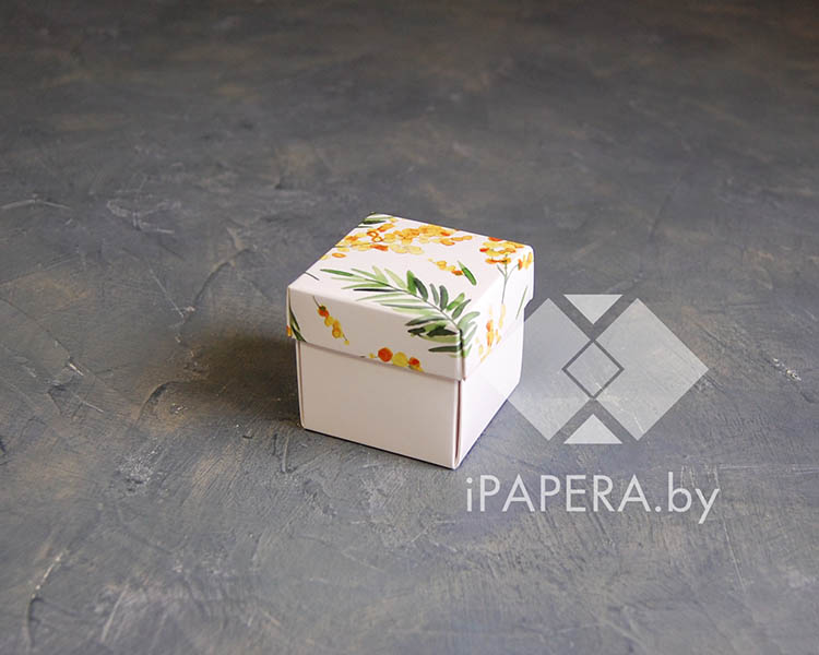 Коробка «Мимоза» 5,5*5,5*5,5 см (белое дно)