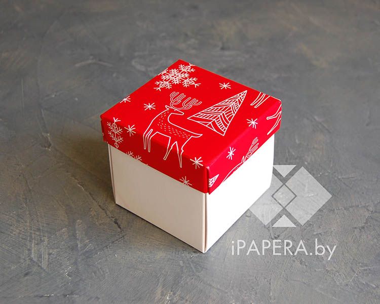 Коробка «Олени» 5,5*5,5*5,5 см (белое дно)
