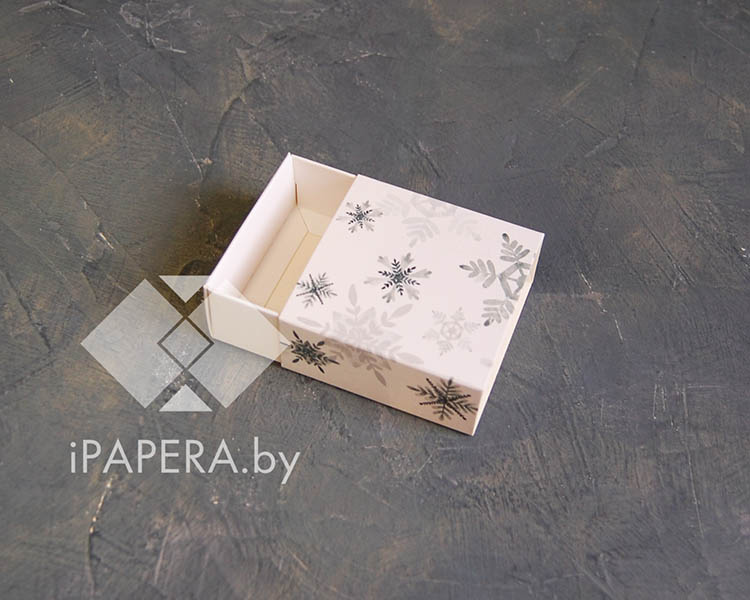 Коробка-пенал «Акварельные снежинки» 7*7*3 см (белое дно)