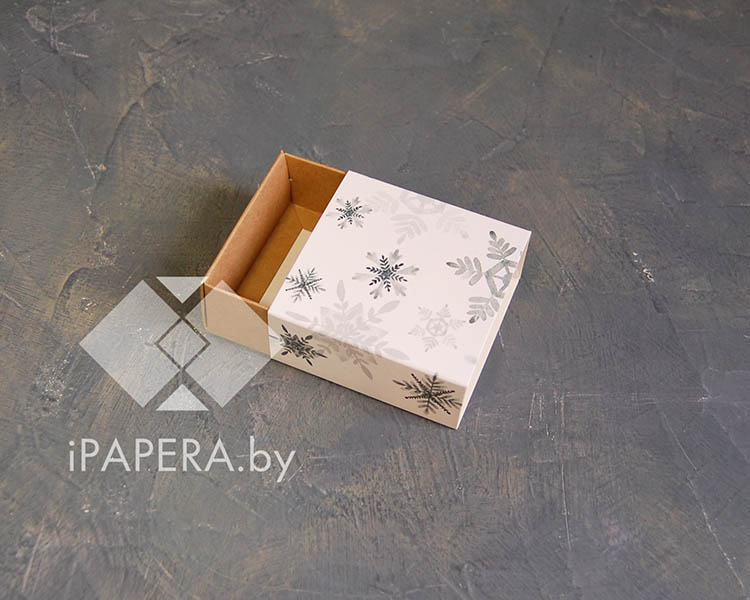 Коробка-пенал «Акварельные снежинки» 7*7*3 см (крафт дно)