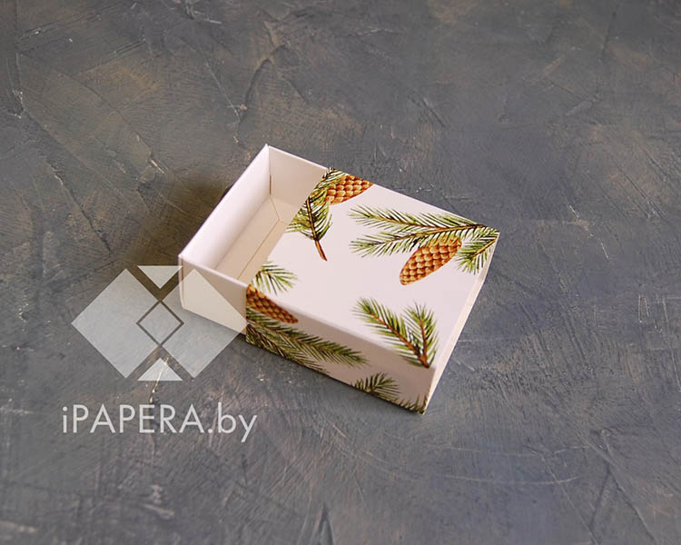 Коробка-пенал «Еловые ветки» 7*7*3 см (белое дно)