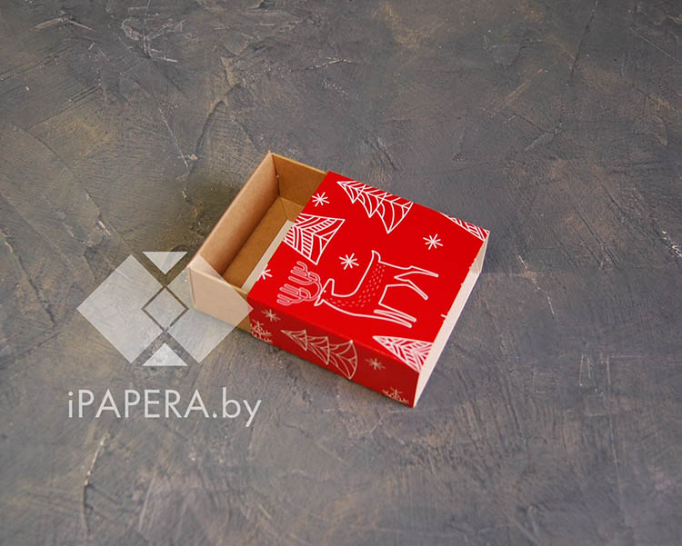 Коробка-пенал «Олени» 7*7*3 см (крафт дно)