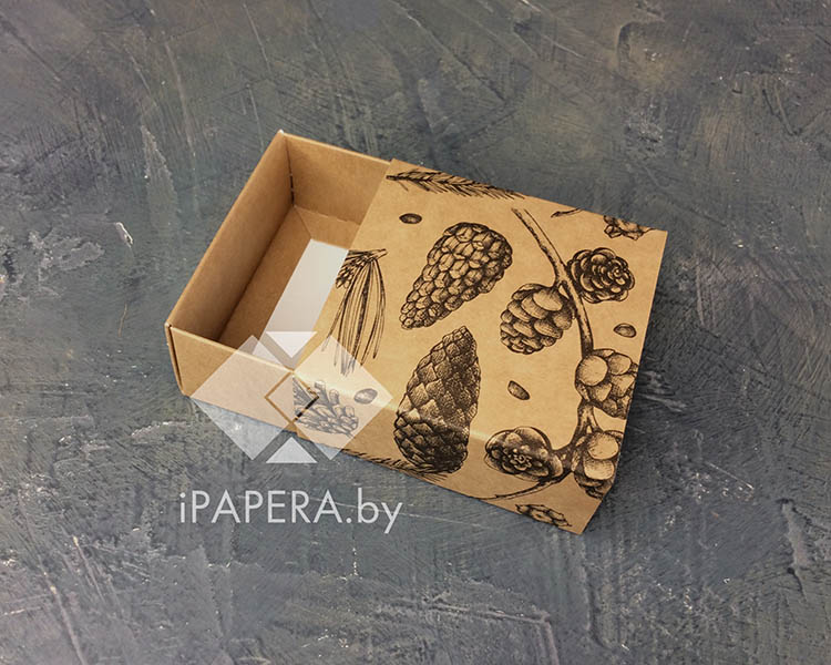 Коробка-пенал «Шишки» 7*7*3 см (крафт дно)