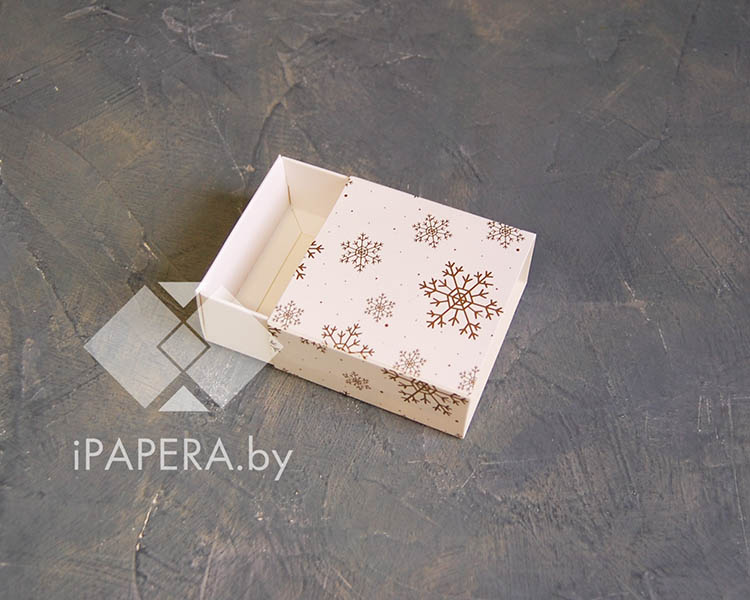 Коробка-пенал «Снежинки» 7*7*3 см (белое дно)
