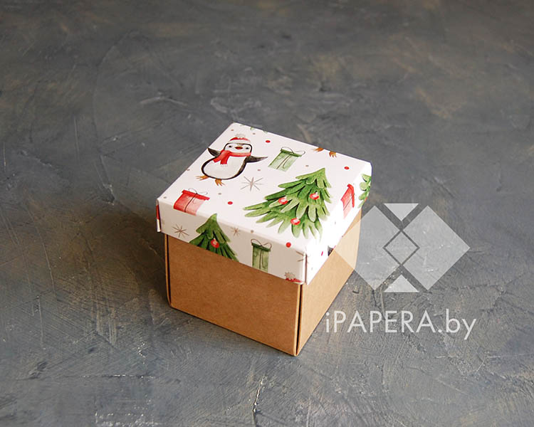 Коробка «Пингвины» 7*7*7 см (крафт дно)