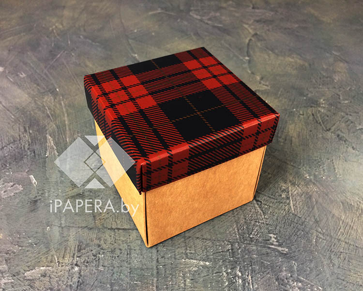 Коробка «Шотландка» 7*7*7 см (крафт дно)