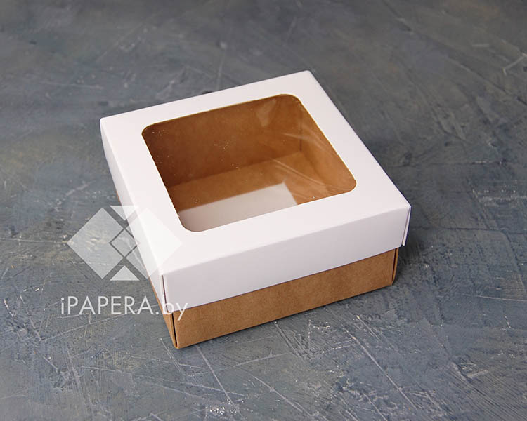 Коробка «Белая с квадратным окном» 10*10*5 см (крафт дно)