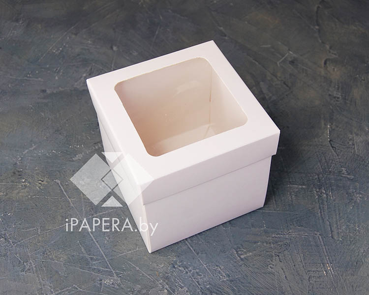 Коробка «Белая с квадратным окном» 10*10*10 см (белое дно)