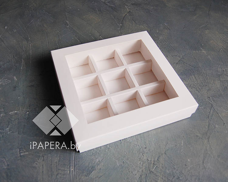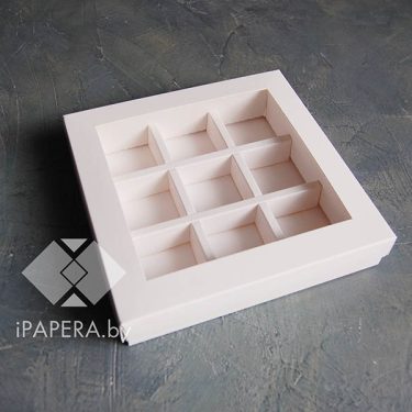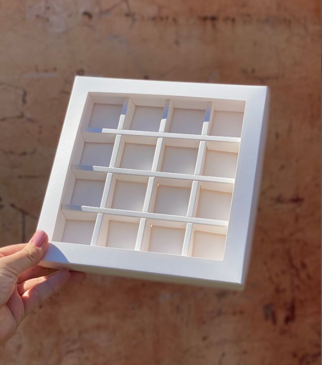 Коробка «Белая с окном» 16 ячеек 18*18*3 см (для конфет), набор из 5 штук