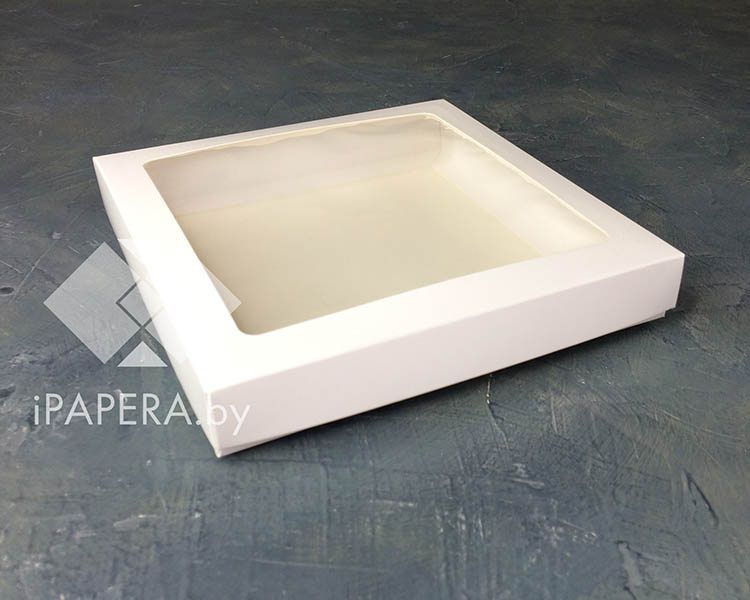 Коробка «Белая с окном» 20*20*3 см (белое дно)