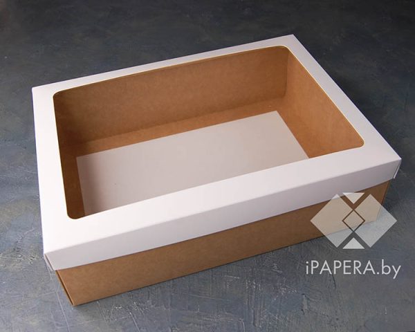 Коробка «Белая с окном» 35*25*10 см (крафт дно)