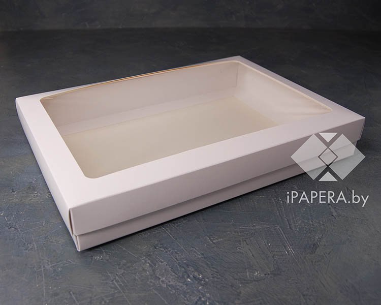 Коробка «Белая с окном» 35*25*5 см (белое дно)