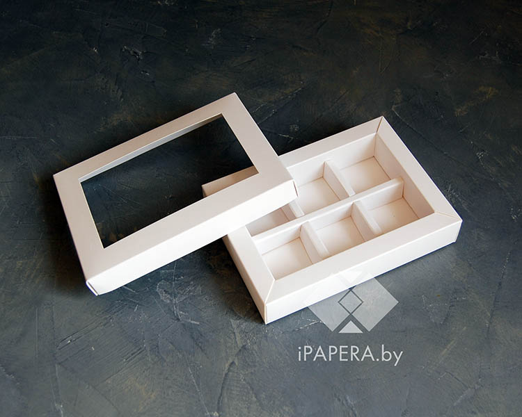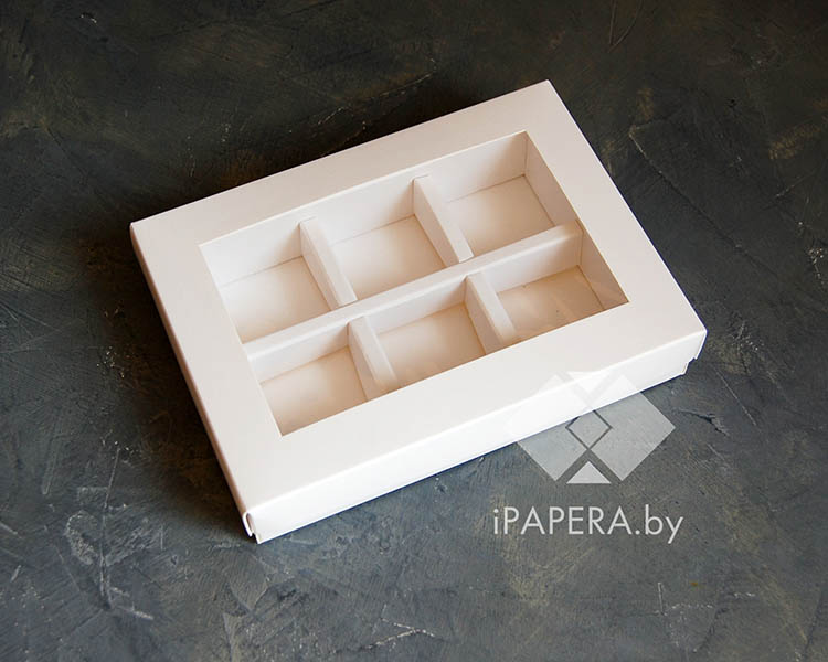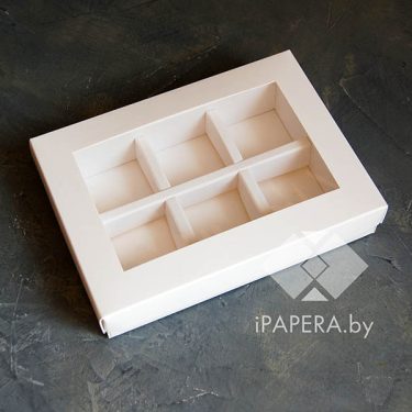 Коробка «Белая с окном» 6 ячеек 13,3*8,5*3 см (для конфет), набор из 5 штук