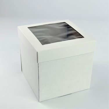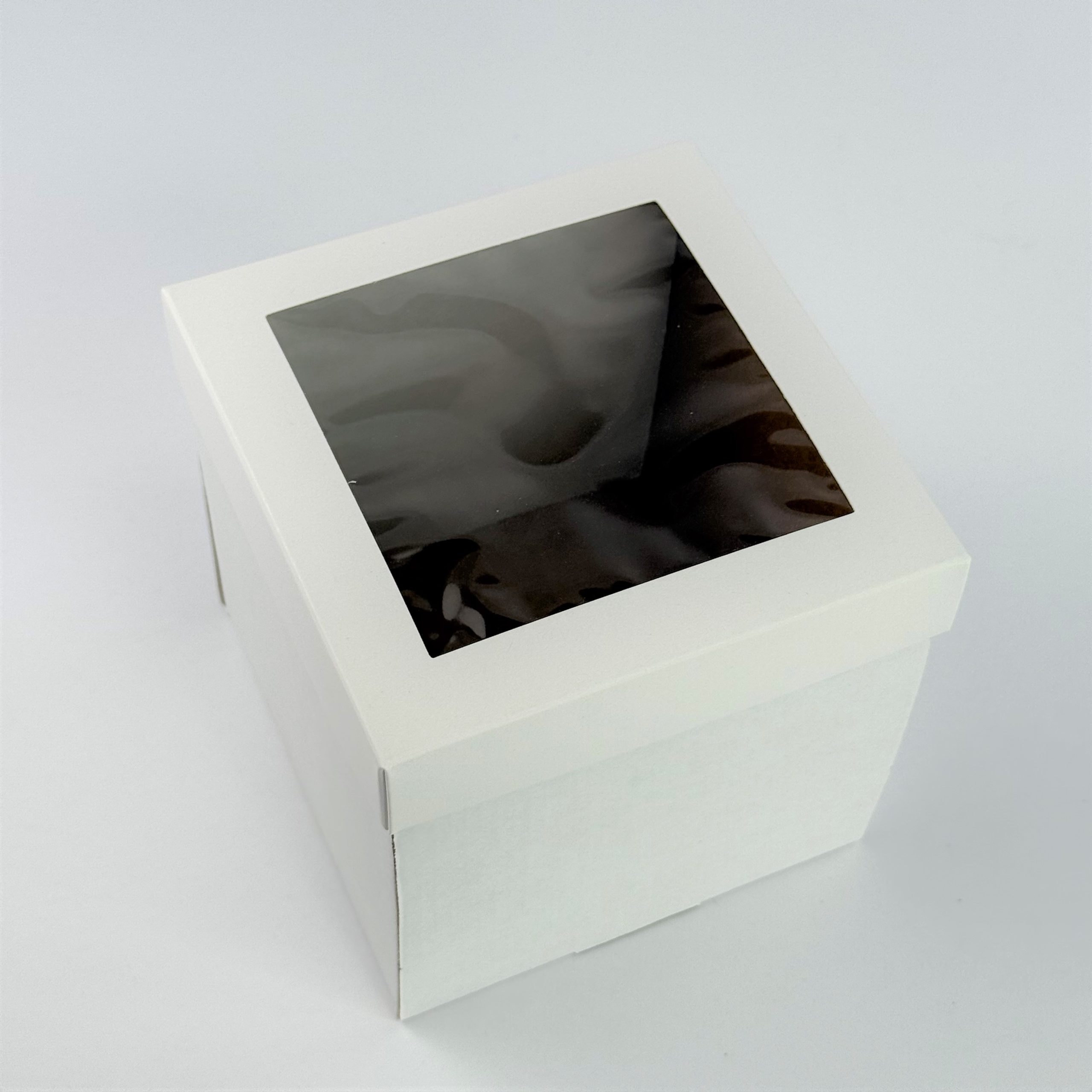 Крафт-коробка «Белая с окном» 12*12*12 см (белое дно из микрогофры)