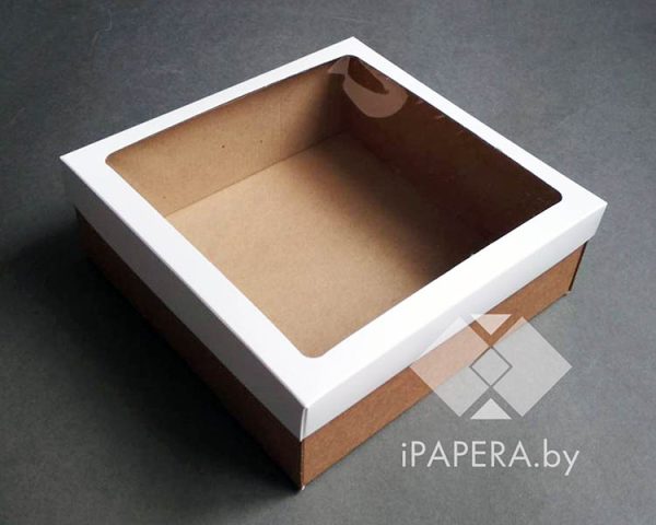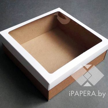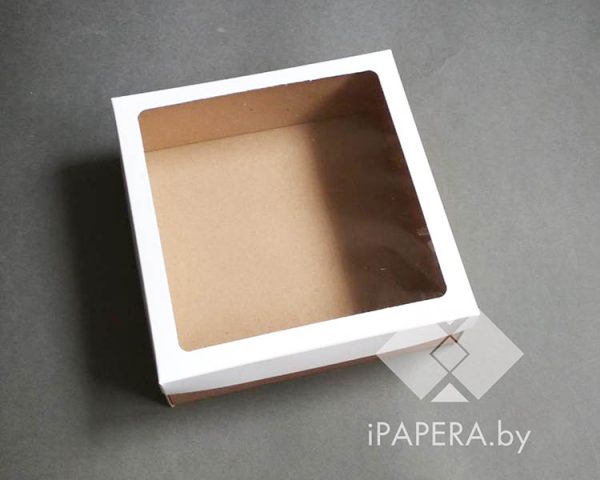 Крафт-коробка «Белая с окном» 25*25*11 см (дно из микрогофры)
