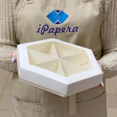 Шестигранная коробка «Белая с окном» 21,5х24,5х4 см (белое дно)