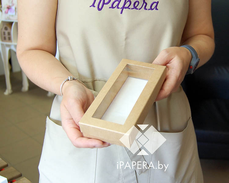 Коробка «Крафт с окном» 15*6*3 см с фальшбортом (крафт дно)