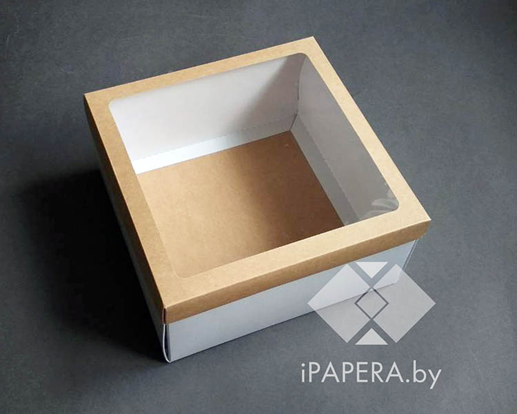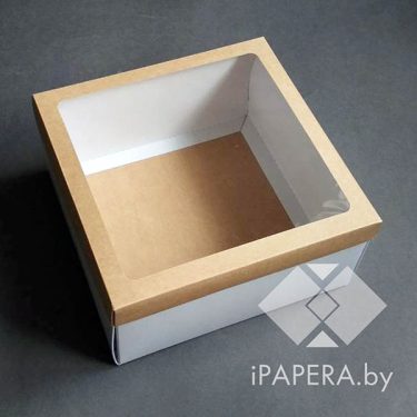 Коробка «Крафт с окном» 20*20*10 см (крафт дно)
