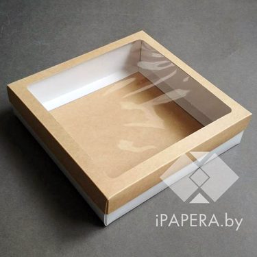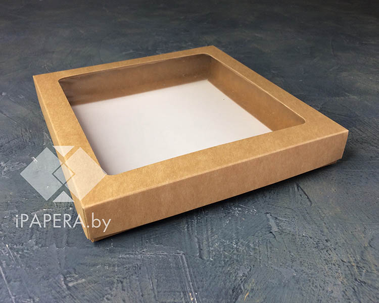 Коробка «Крафт с окном» 20*20*3 см (крафт дно)