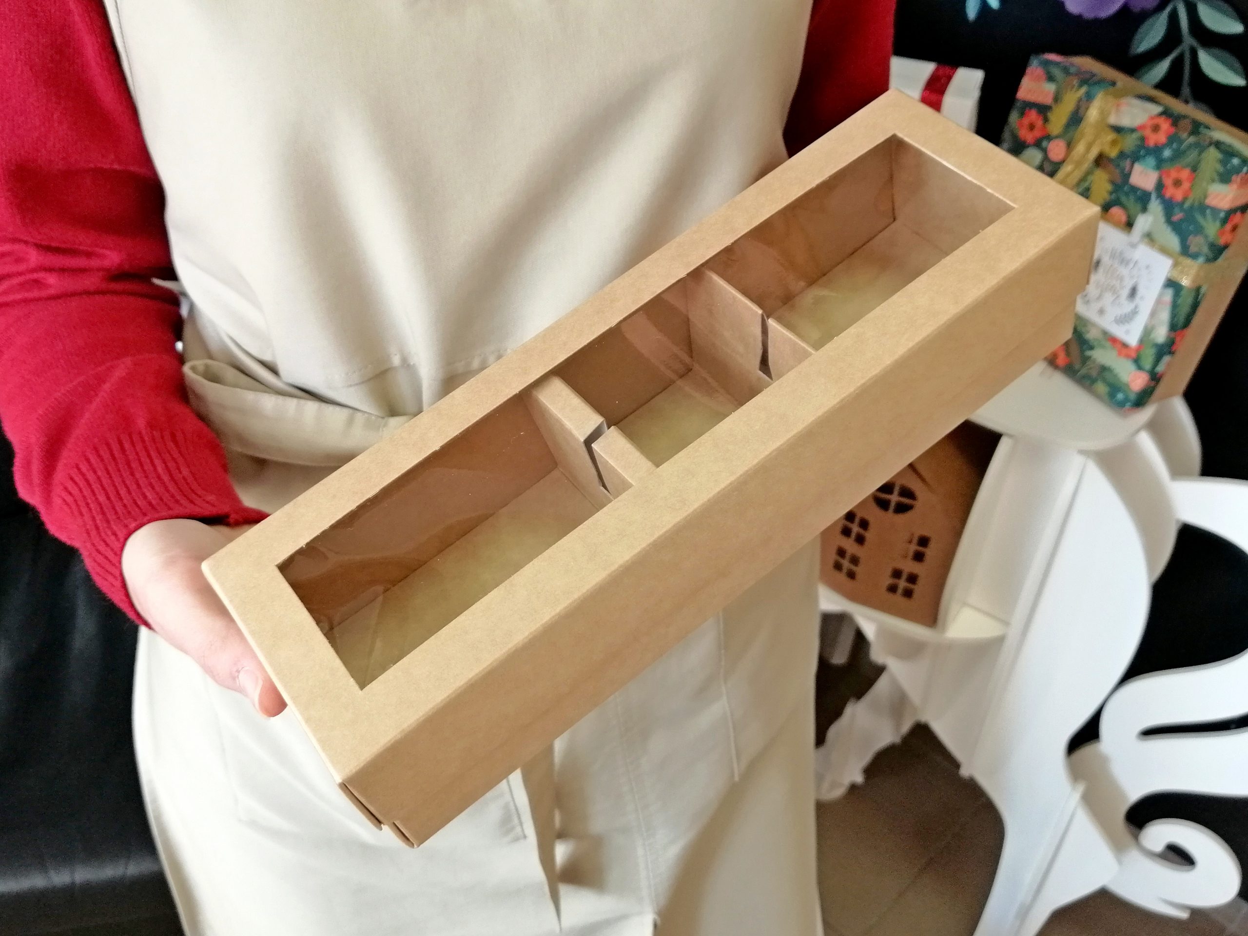 Коробка «Крафт с окном» 23*7*5 см с вкладышем (крафт дно)