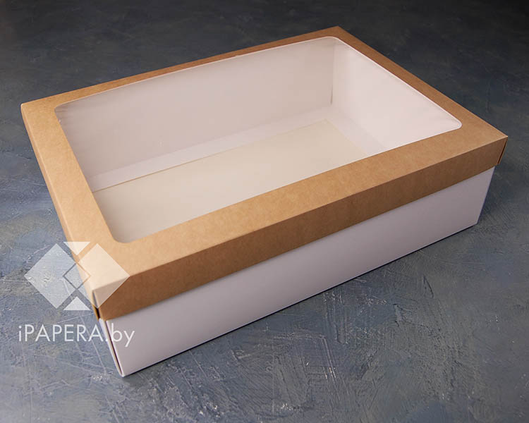 Коробка «Крафт с окном» 35*25*10 см (белое дно)