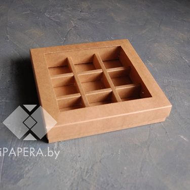 Коробка «Крафт с окном» 9 ячеек (для конфет), набор из 5 штук