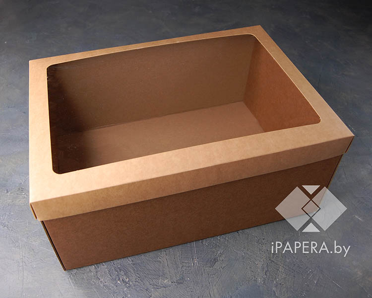 Крафт-коробка «Крафт с окном» 35*25*15 см (дно из микрогофры)