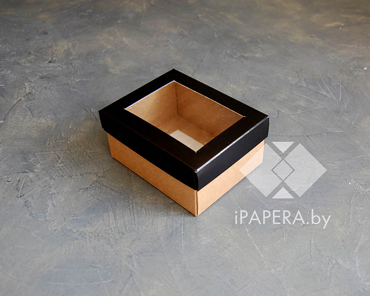 Коробка «Черная с окном» 10*8*5 см (крафт дно)