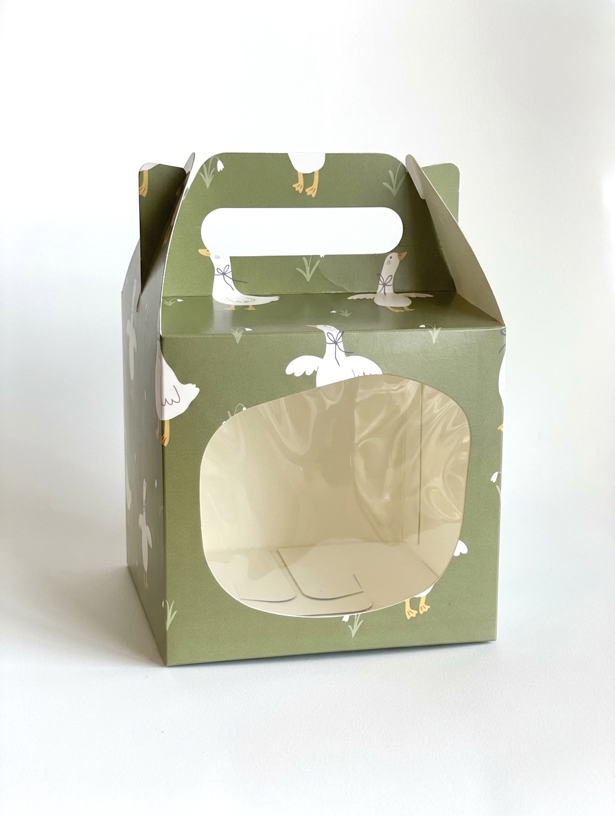Коробка с ручкой и окном «Гуси» 14*13*13,5 см