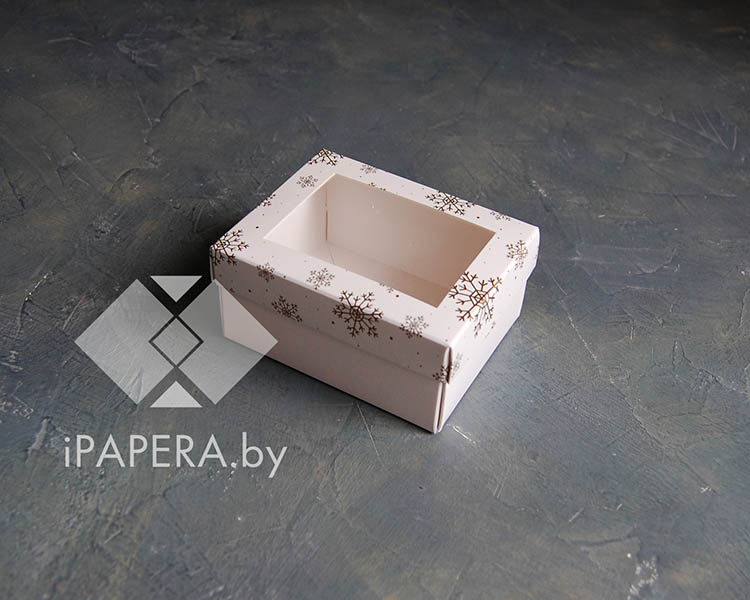 Коробка «Снежинки с окном» 10*8*5 см (белое дно)