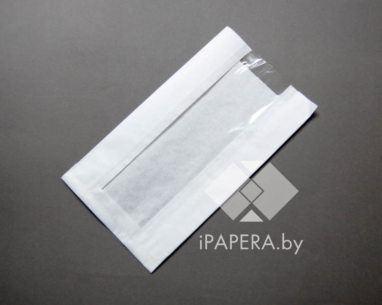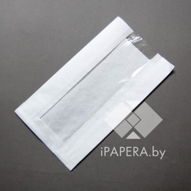 Белый пакет без дна с окном 25х14 см, 38г/м2, 100 шт