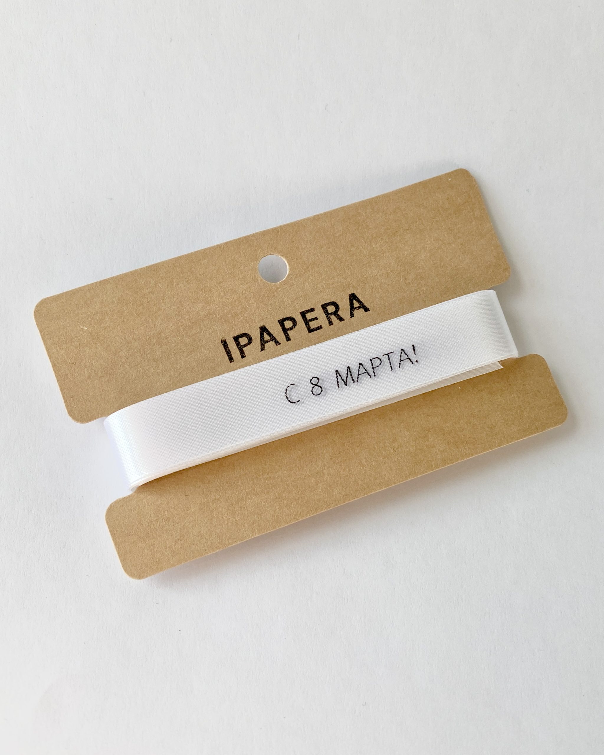 Сатиновая белая лента «С 8 МАРТА!», 15 мм с печатью, 5 м