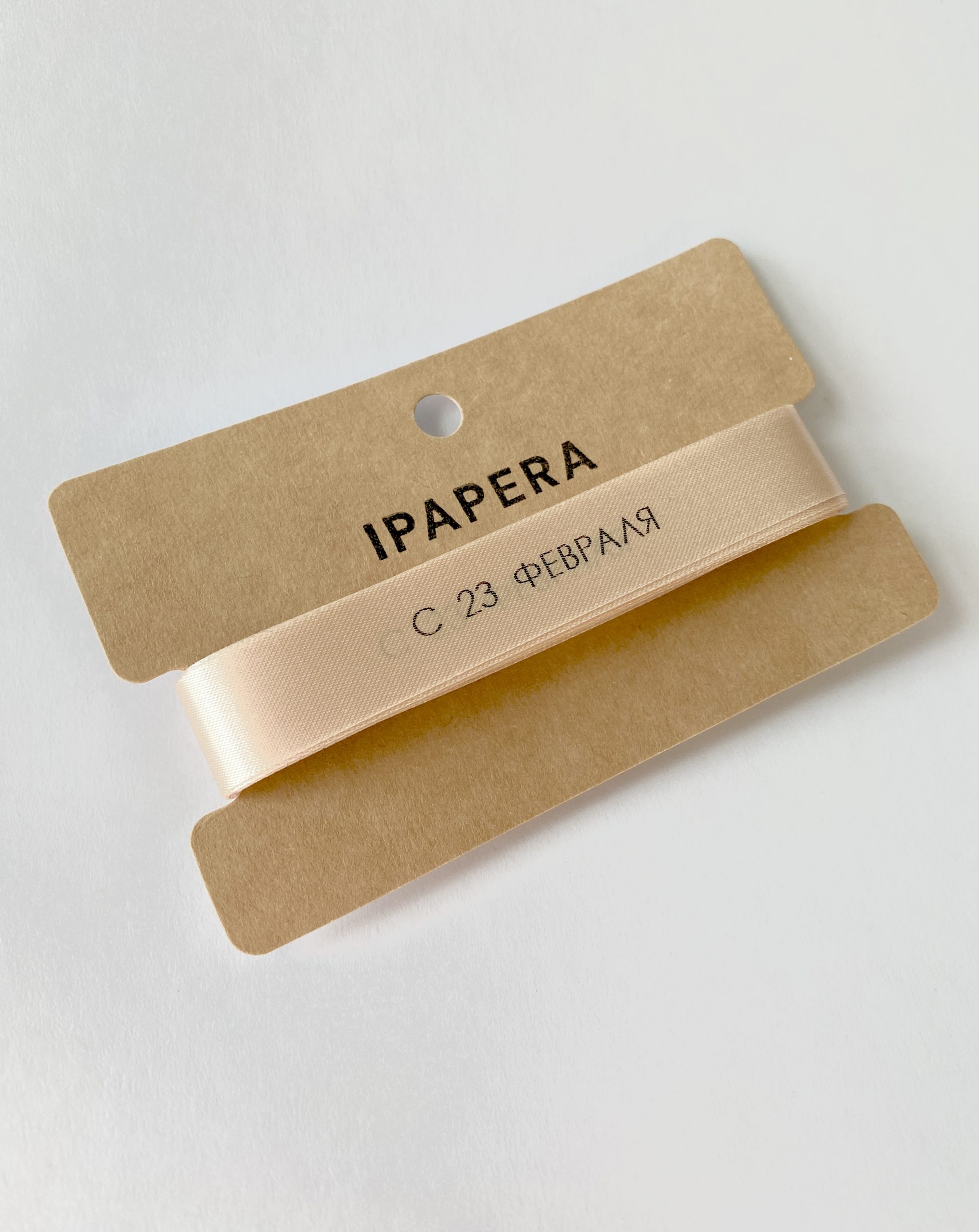 Сатиновая бежевая лента «С 23 ФЕВРАЛЯ», 15 мм с печатью, 5 м