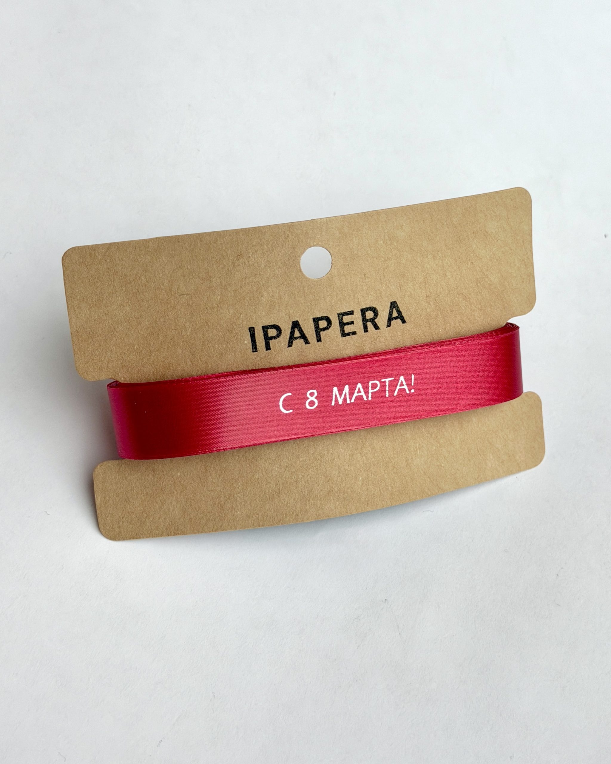 Сатиновая красная лента «С 8 МАРТА!», 15 мм с печатью, 5 м