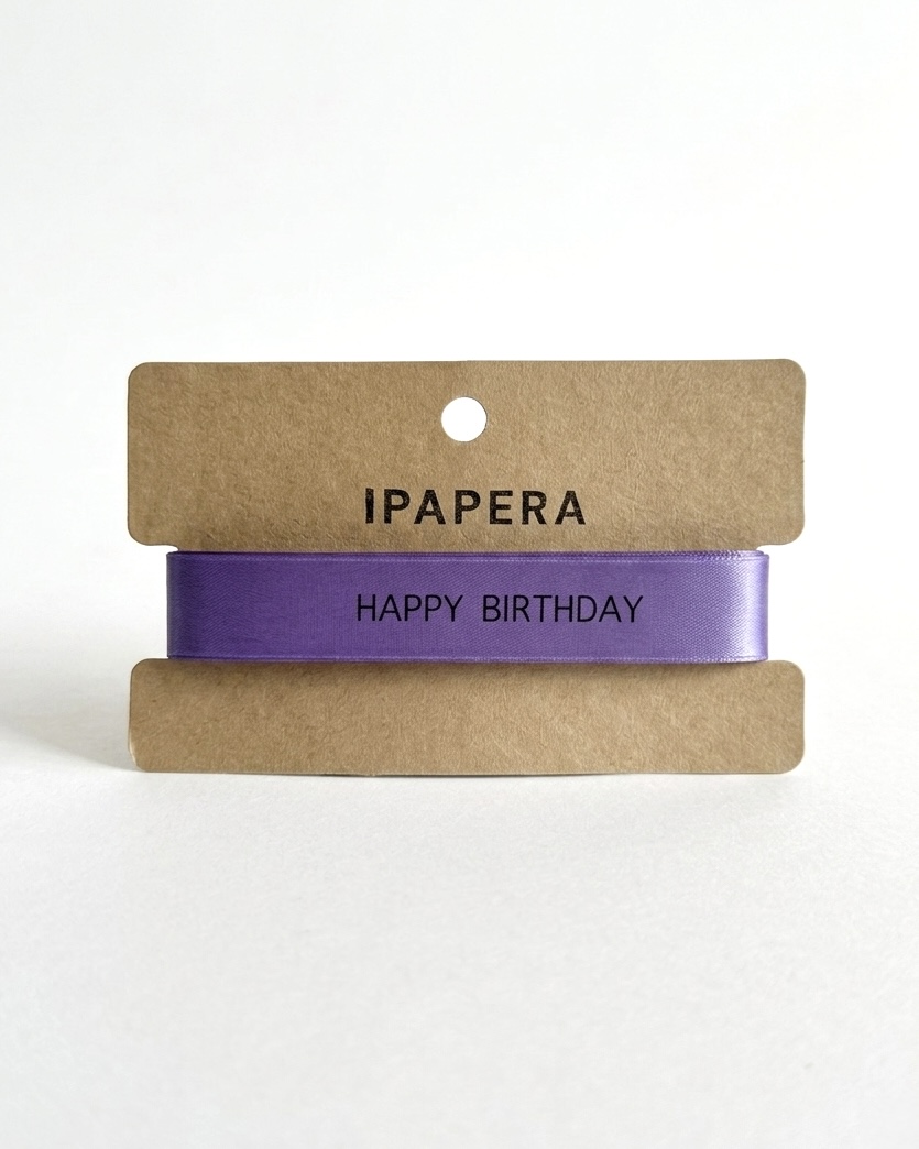 Сатиновая лавандовая лента «HAPPY BIRTHDAY», 15 мм с печатью, 5 м