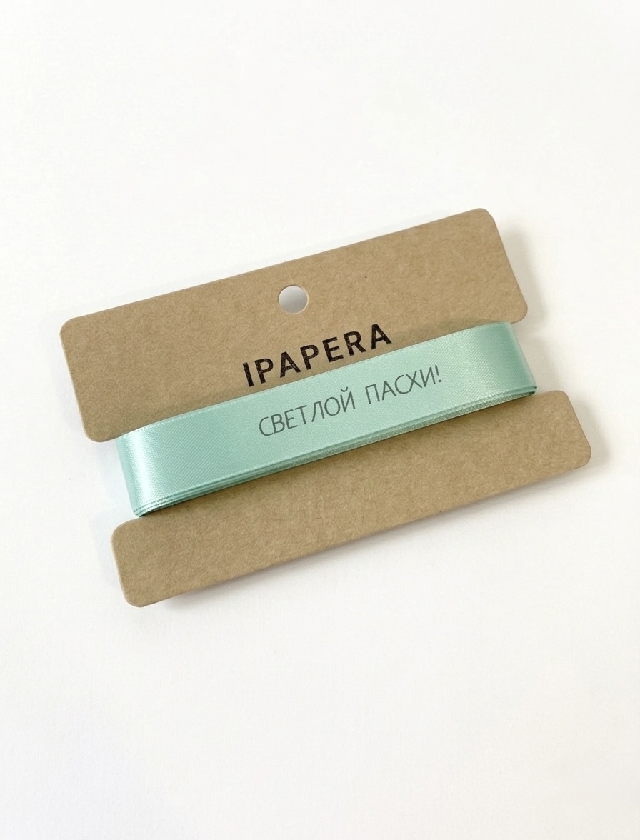 Сатиновая мятная лента «СВЕТЛОЙ ПАСХИ!», 15 мм с печатью, 5 м
