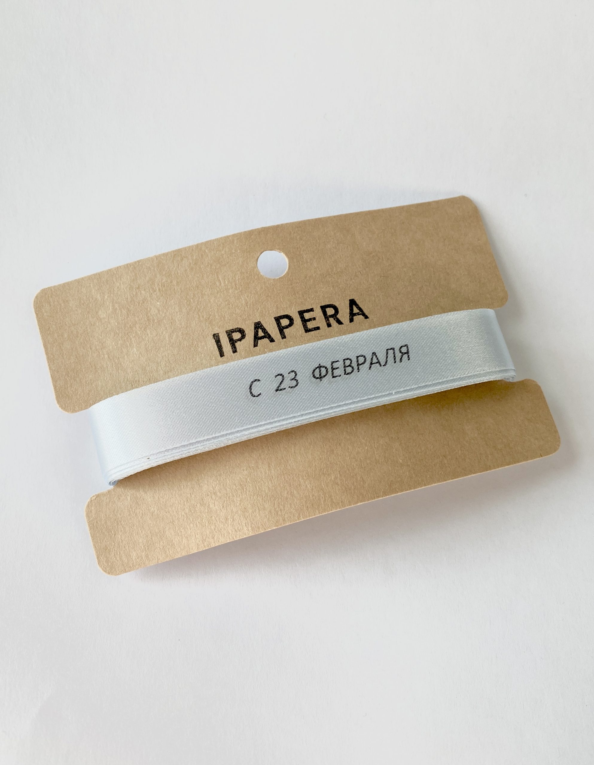 Сатиновая серебристая лента «С 23 ФЕВРАЛЯ», 15 мм с печатью, 5 м