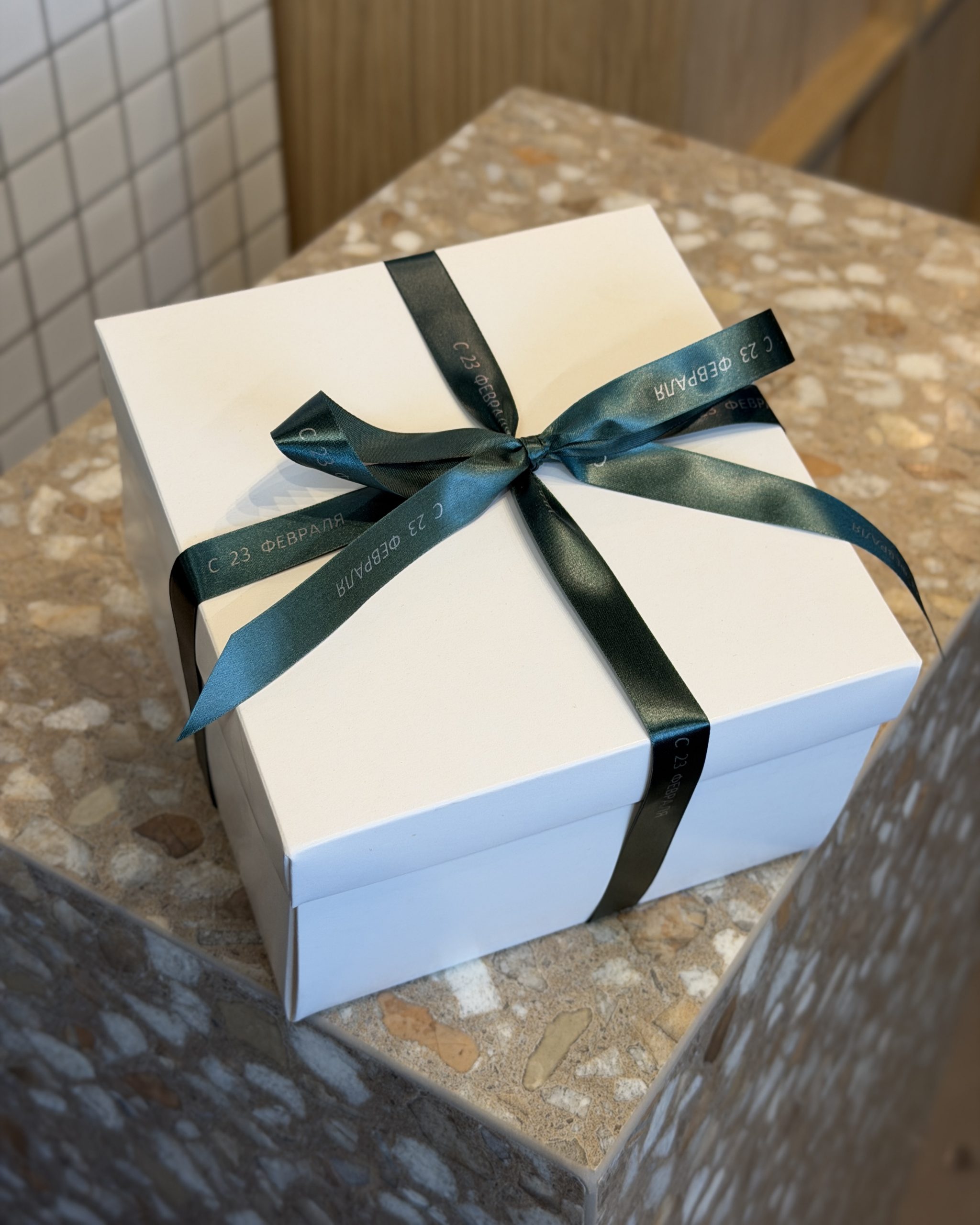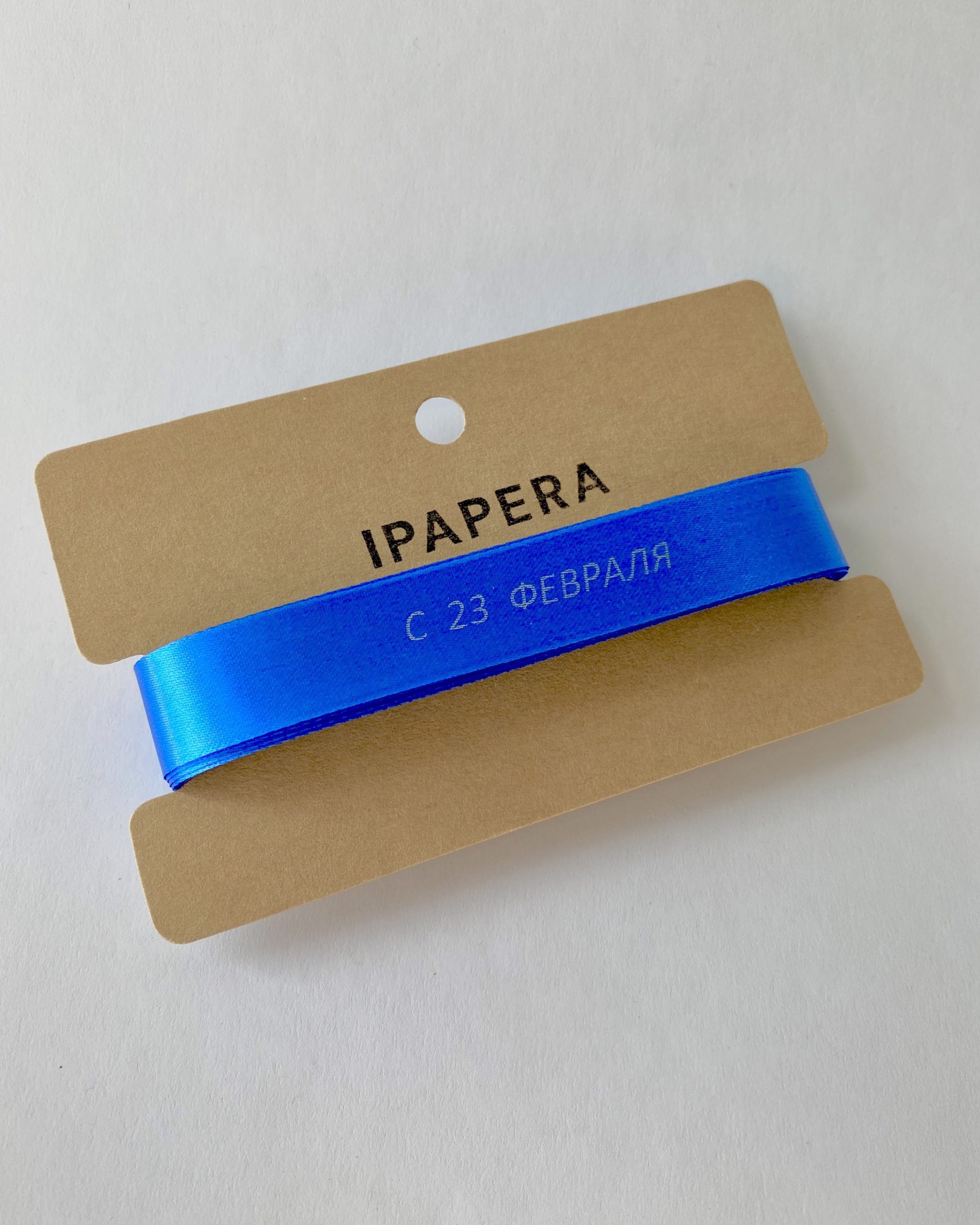 Сатиновая синяя лента «С 23 ФЕВРАЛЯ», 15 мм с печатью, 5 м