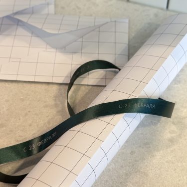 Сатиновая лента синего цвета с печатью серебряным цветом