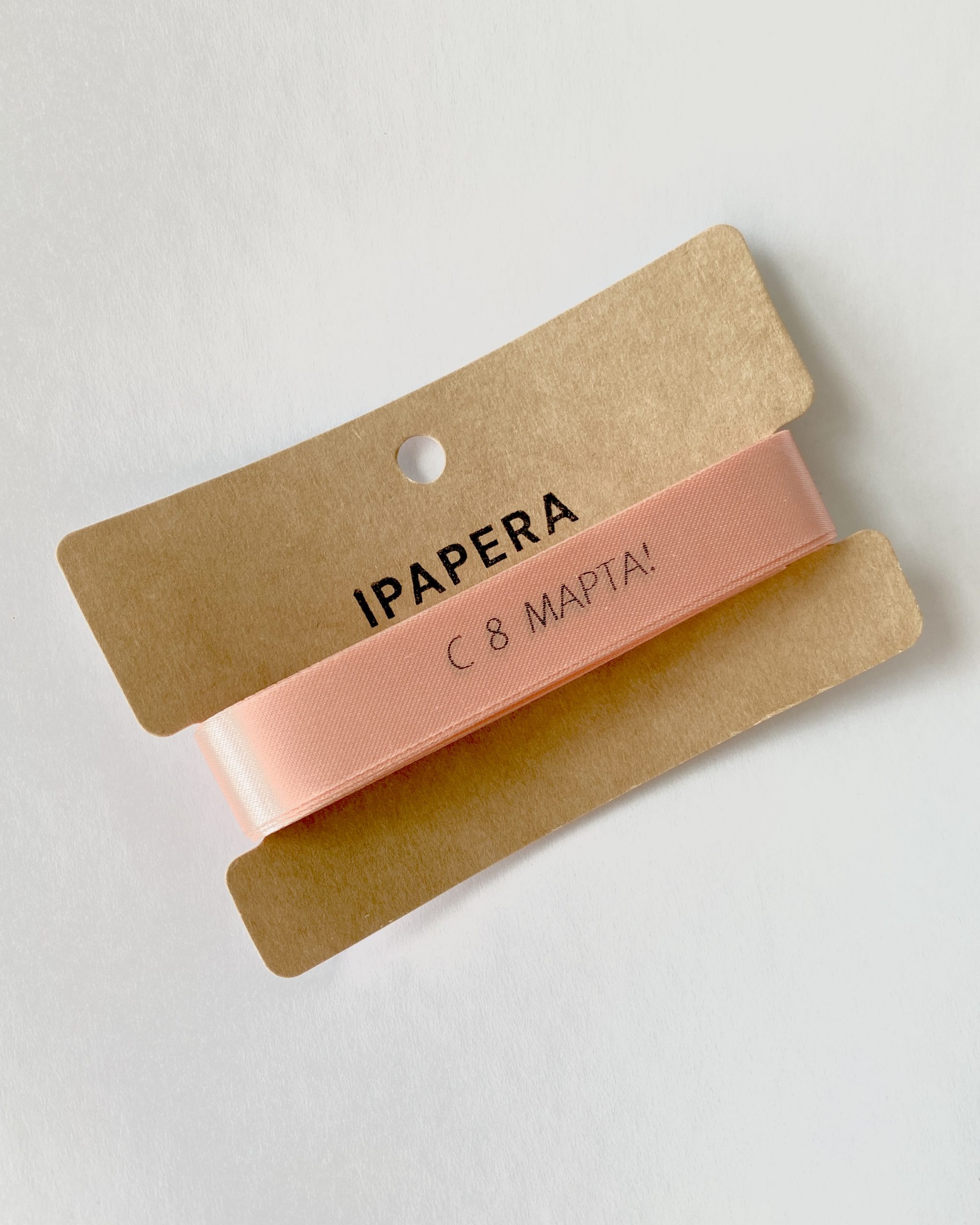 Сатиновая светло-розовая лента «С 8 МАРТА!», 15 мм с печатью, 5 м