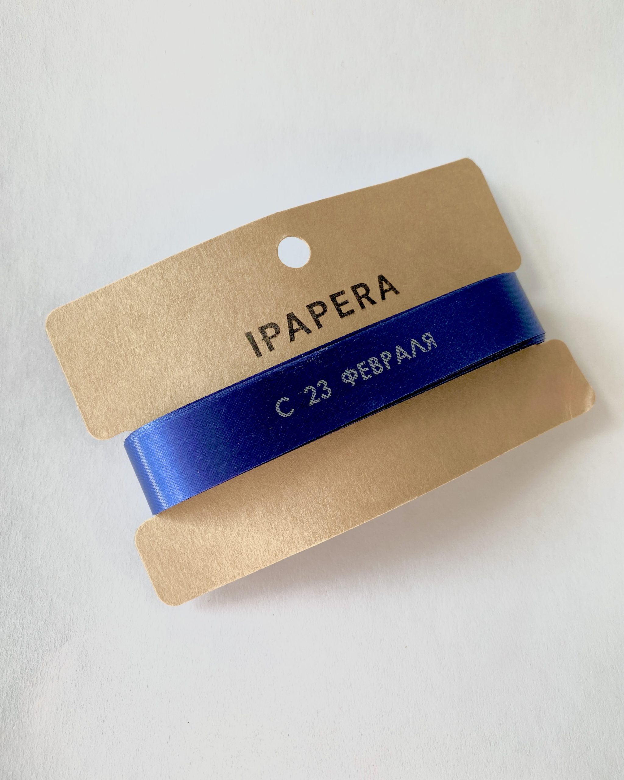 Сатиновая темно-синяя лента «С 23 ФЕВРАЛЯ», 15 мм с печатью, 5 м