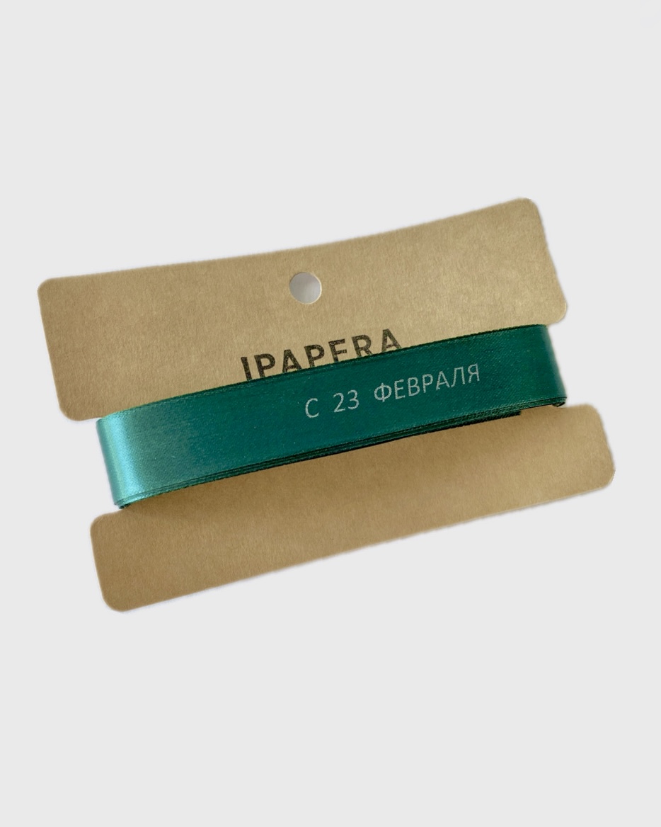 Сатиновая темно-зеленая лента «С 23 ФЕВРАЛЯ», 15 мм с печатью, 5 м
