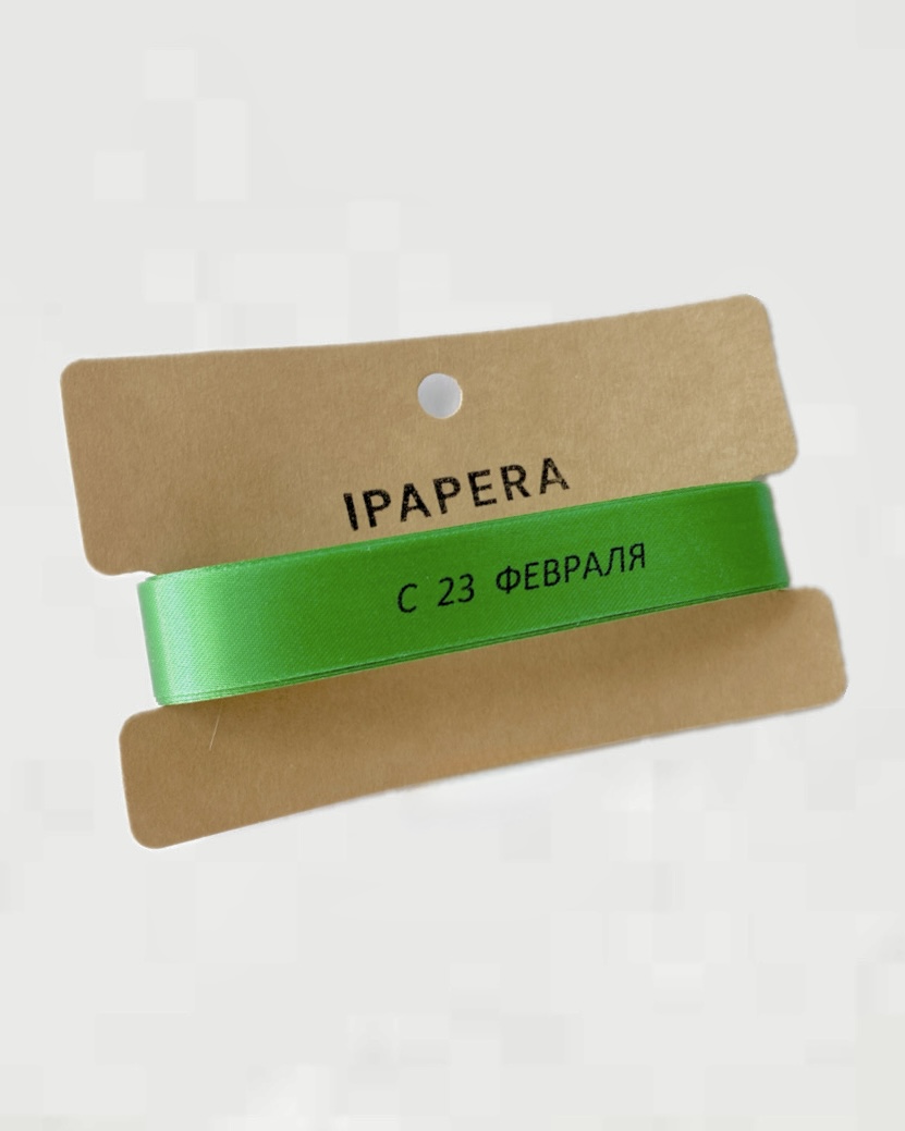Сатиновая зеленая лента «С 23 ФЕВРАЛЯ», 15 мм с печатью, 5 м