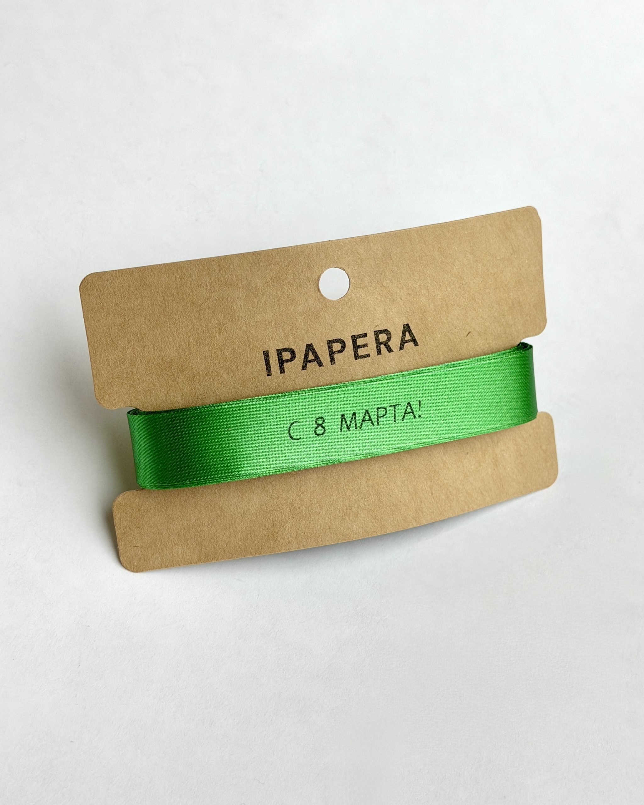 Сатиновая зеленая лента «С 8 МАРТА!», 15 мм с печатью, 5 м